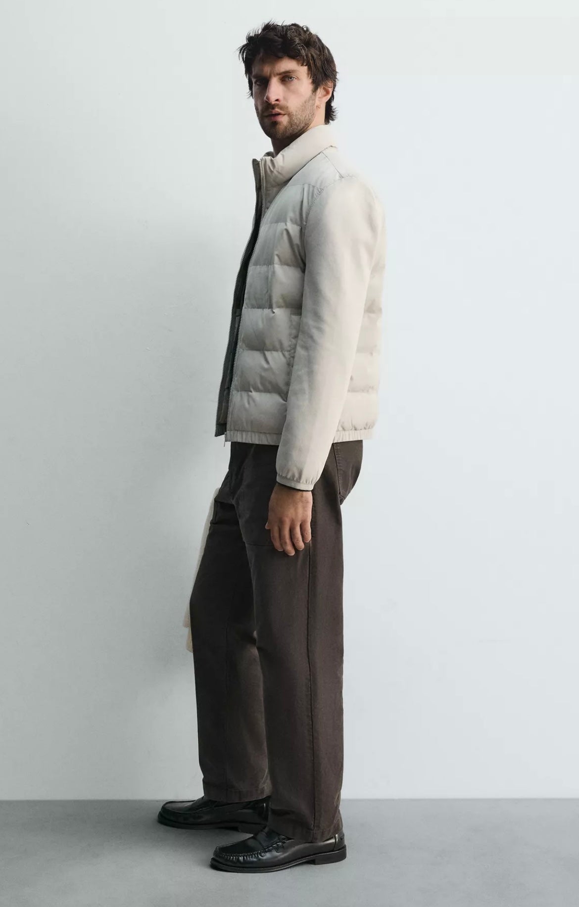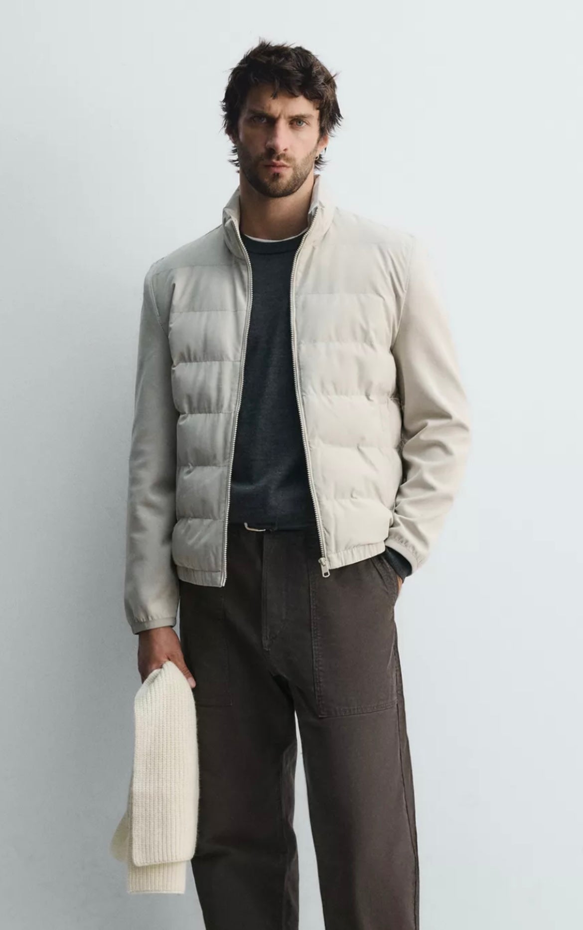 WHITE HYBRID PUFFER JACKET REGULAR FIT